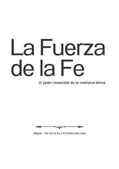 La Fuerza de la Fe es un libro dedicado al despertar de una de las energías más poderosas del ser humano: la fe consciente. Obra Realizada e Inspirada en la radiación del Fuego Azul, en este libro el Arcángel Miguel presenta la fe no como una creencia pasiva, sino como una fuerza espiritual activa capaz de proteger, sostener y transformar la vida.