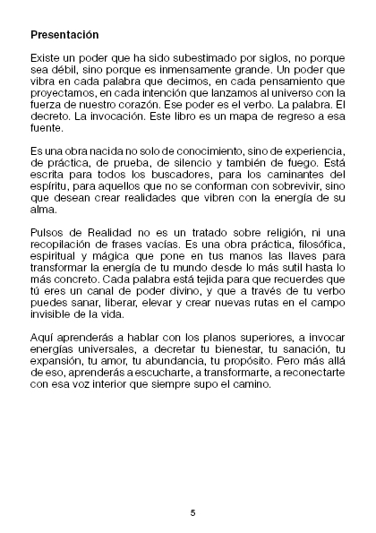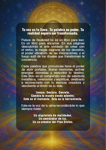Pulsos de Realidad es mucho más que un libro: es un mapa espiritual y práctico que te guía en el arte de crear con el verbo, conectar con energías superiores y activar tu poder creador en el día a día.