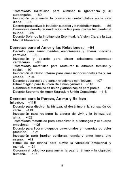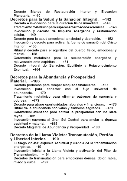 Dentro de sus páginas encontrarás enseñanzas profundas, decretos prácticos y rituales que abarcan: